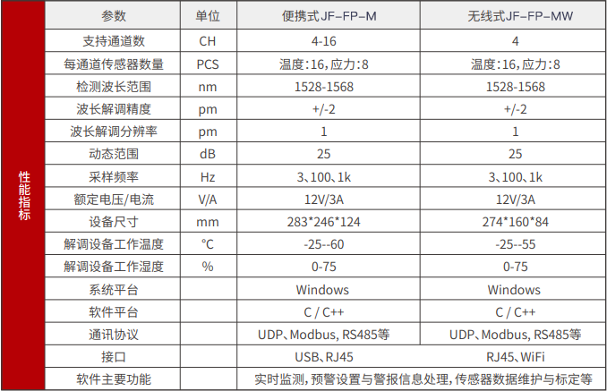 JF-FP-M光(guāng)纖光(guāng)栅便攜式解調儀設計(jì)精巧,使用(yòng)靈活,操作(zuò)簡便,适合工(gōng)程項目現(xiàn)場(chǎng)移動測Ω試。該系統集成光(guāng)纖傳感器(qì)波長(cháng)和(hé)功率光(guāng)譜數(shù)據采集、顯示、存儲于一(yī)體(t♣ǐ),可(kě)廣泛用(yòng)于各類工(gōng)程的(de)現(xiàn)場(chǎng)檢測。