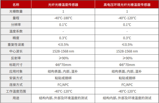 光(guāng)纖光(guāng)栅溫度傳感器(qì)(JF-FBG-T01)和(hé)高(gāo)電(diàn)壓環境光(guāng)纖光(guγāng)栅溫度傳感器(qì)(JF-FBG-HT01)具有(yǒu)傳熱(rè)快(kuài)、不(bù)受外(wài)力影(yǐng)響、保持分(fēn)布式能(nén∏g)力、耐久性好(hǎo)、可(kě)靠性好(hǎo)等優點。其中高(gāo)電(diàn)壓溫度傳感器(qì)具有(yǒu)熱(rè)傳導性和(hé)高(↓gāo)強度特性。