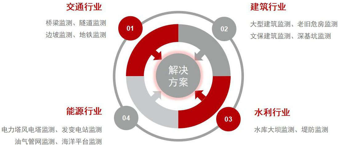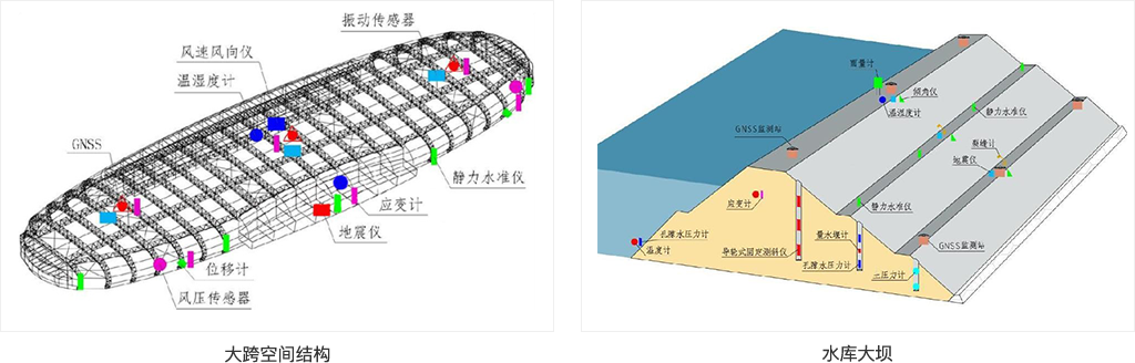 我們依據行(xíng)業(yè)規範、項目資料、設計(jì)文(wén)件(jiàn)、結構分(fēn)析等對(duì)工(gōng)程單體(tǐ)設計(jì)具有(yǒu)針對(duì)性的(•de)結構健康監測解決方案。當前公司已接觸、完成的(de)監測解決方案應用(yòng)場(chǎng)景如(rú)下(xià):